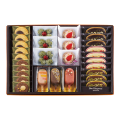 ショコララング: 3種類10枚(ダーク3・ホワイト4・ミルク3) ショコ・ショコラ: 3種類3個(ペッシュ1・マロン1・フレーズ1) クローバーパイ:3枚 チュチュタルト:3個 ショコラサブレ: 2種類10個(プレーン5・ショコラ5) |